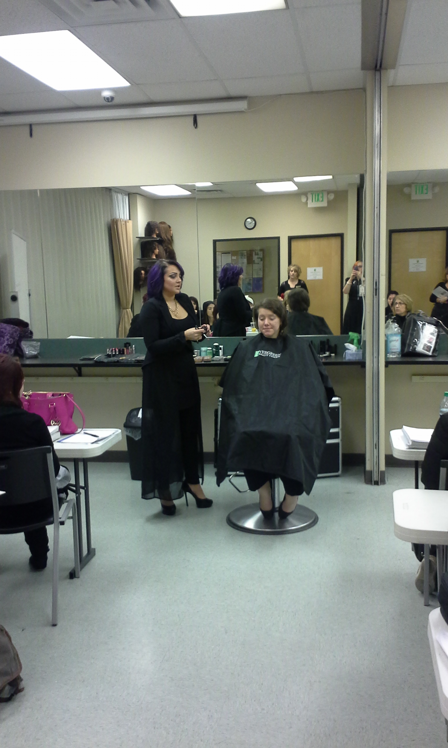 We also had the pleasure of having a guest speaker come in and do a makeup demo for us! It is so exciting listening to a pro in the industry share her stories and tips. We all felt very inspired while we were watching her perform her makeover magic. Since I would love to eventually become a makeup artist, I soaked up all of her suggestions, tricks and advice like a sponge! I am so happy I made the choice to come to Evergreen, everyday I am in class I become more determined to succeed in the beauty industry, and have a blast while doing it!