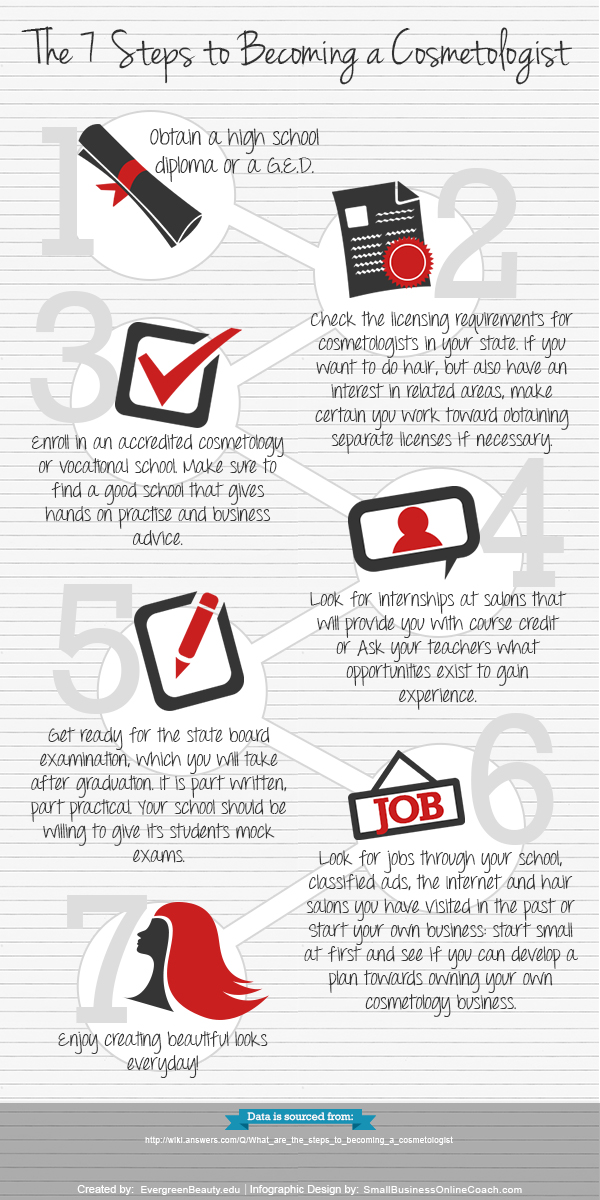 Check out our infographic: “The 7 Steps to Becoming a Cosmetologist”