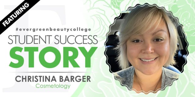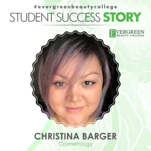“When it came time to start looking into schools, I felt I would receive the best all around education at Evergreen Beauty College. I wanted to learn everything and not just focus on one area and their curriculum caters to that want. Evergreen also works with the VA benefits for tuition which were important to me in picking a school. These areas all factored into choosing Evergreen over other schools,” states Christina.