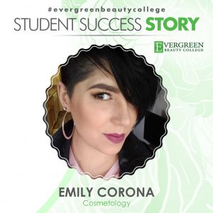 Like many others, Ms. Emily took different paths in her past which are aiding in the fruits of her labor since enrolling into Evergreen Beauty College. “I chose the cosmetology industry because it is the perfect mixture of all the things that I love. I have always loved science and art, I have even earned my bachelors in Fine Arts. I also have years of experience working in customer service. Every step of the way in school, things I have done or have learned in the past have helped me in some way or another. All the pieces of my life are falling into place and I am so excited to see where it leads me. Before I started school, I was actually already working for Evergreen Beauty College at the Everett Campus at the front desk as a Guest Coordinator (I still work there), and at night working freight, service desk and paint department at Home Depot. I would even teach monthly painting classes on any weekend I had off,” Emily Shares.