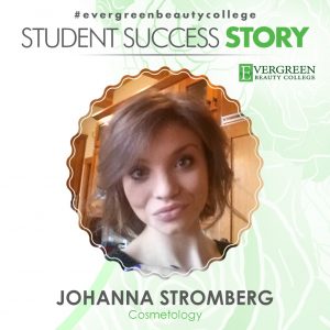 So why did she pick Evergreen Beauty College? “To be perfectly honest, I knew I wanted to come here after the first time I came to visit. Imminently the warm atmosphere struck me. The staff is always smiling, and you genuinely get the impression that they love their job. I was also very impressed by how hands on Evergreen’s approach to education are. The majority of student’s time is spent doing practical work, and I believe that is invaluable. One thing that really sets Evergreen apart from other beauty schools is the importance they place on the business side of our education. We have a special business curriculum we go through to make sure we have a basic understanding. When we all graduate, most of us will be self-employed and once we enter the real world, that knowledge and skill is huge will be priceless,” shared Johanna.