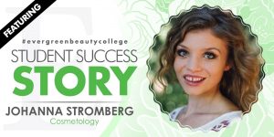 So why did she pick Evergreen Beauty College? “To be perfectly honest, I knew I wanted to come here after the first time I came to visit. Imminently the warm atmosphere struck me. The staff is always smiling, and you genuinely get the impression that they love their job. I was also very impressed by how hands on Evergreen’s approach to education are. The majority of student’s time is spent doing practical work, and I believe that is invaluable. One thing that really sets Evergreen apart from other beauty schools is the importance they place on the business side of our education. We have a special business curriculum we go through to make sure we have a basic understanding. When we all graduate, most of us will be self-employed and once we enter the real world, that knowledge and skill is huge will be priceless,” shared Johanna.