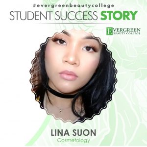 We asked Lina why she chose to attend Evergreen Beauty College to start her career off in and her response, “I have visited many beauty schools in the past but I knew Evergreen would be a great school for me. I had read all the reviews and have talked to some of the students who attended the college and heard nothing but positive feedback!!! I’m really happy and proud to say that Evergreen is my school and I love everyone here,” expresses Lina.