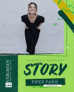 Ms. Piper Paris graduates next June, 2020. And if you are interested in continuing to follow Piper throughout her program, you can check her out on Instagram: @beautybypiperparis . Congratulations Piper! We can not wait to see the impact you make in the industry and are proud of the success your are showing this early within your career field!
