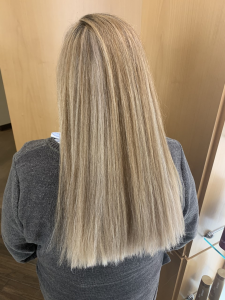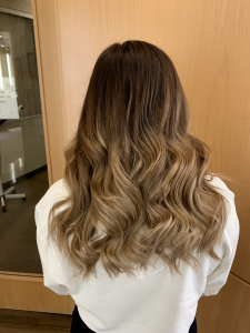 A beautiful blended of highlints has this client leaving refreshed. Ms. Tayler’s transition in color is beautifully blended.