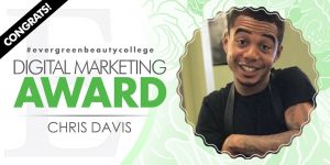 Sometimes when you have an idea of what you want, life has a different plan for you. That is what happened to our Digital Marketing Award winner for the month of July, Chris Davis, from our Bellevue Campus. Life pointed him in the direction of Cosmetology and he is now halfway through the program and is projected to graduate in March of 2018. I always love hearing people’s stories of why they decided to do what they have chosen and how they got where they are. Chris was no different. I was so excited to hear his journey!