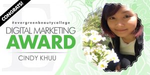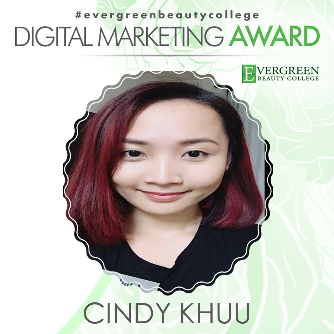 Congratulations to one of our May Digital Marketing Award Winners, Cindy Khuu, from the Cosmetology department at our Bellevue campus! Cindy will soon be on her way in the beauty industry as she just recently graduated! We at Evergreen are very excited for Cindy to take her state board tests, get licensed and become an amazing part of the wonderful world that is Cosmetology! Before she graduated, we were lucky enough to get to know what made her become interested in the industry, her experiences at Evergreen and what she plans to do in the future!
