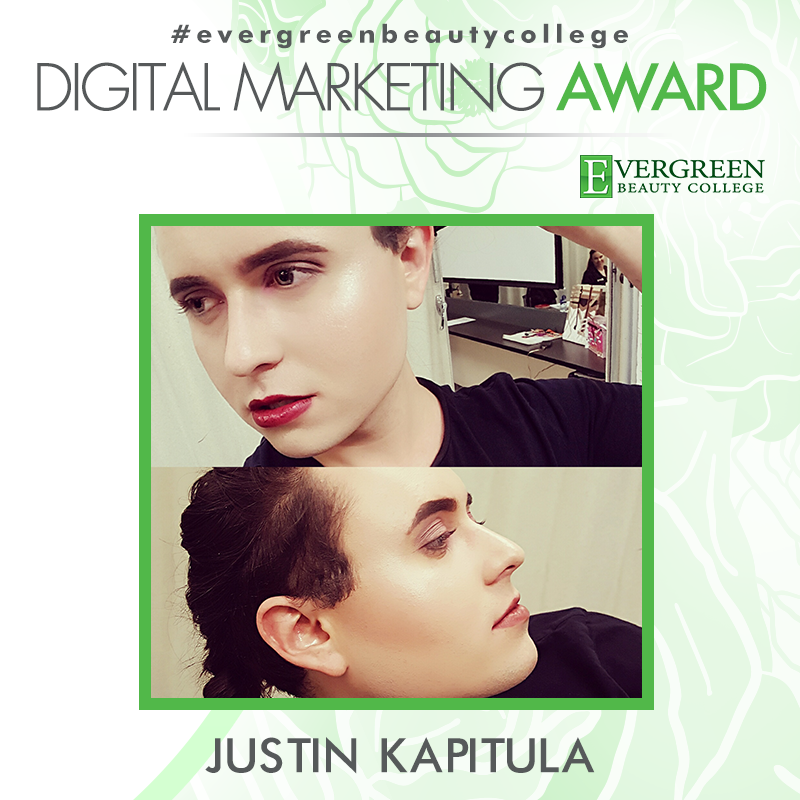 We are so excited to share with you February’s Digital Marketing Award winner for the Bellevue campus, Justin Kapitula! Justin, like many of us, struggled with not knowing what he wanted to do with his life — sometimes the hardest part is just figuring out what it is you want to do! For Justin it took a few weeks off of work and some time to reflect on his life that it finally hit him that he wanted to join the beauty industry.
