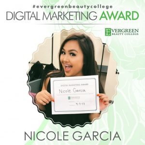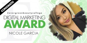 Some people are just born to be in this industry. They feel the part, they look the part and they act the part. Nicole Garcia is one of those people and just happens to be the Digital Marketing Award winner for the Bellevue campus in the month of August! Please take a moment to learn more about Nicole’s journey into the skincare world and what her plans are for after graduation!