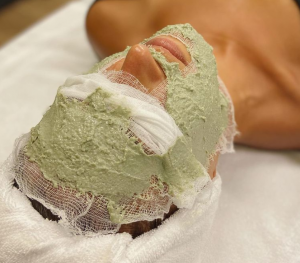 Alexis performed a facial with a soothing seaweed mask on one of her classmates.