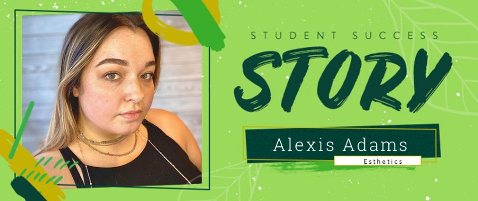 When we asked Alexis why she chose the Esthetics program, she shared, “I’ve always loved playing with cosmetics and skin care, and I’ve particularly loved brow shaping and lashes. I spent my teenage years doing makeup for fun on myself and my friends. Some of my favorite memories are doing makeup on friends before school dances. I’d spent hours watching makeup tutorials on YouTube. It wasn’t until I was years into retail job after retail job that I learned about Estheticians and what is covered under their licensing. I was instantly intrigued.”