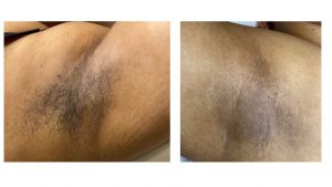 Before and after of an underarm waxing service done by Brianna.
