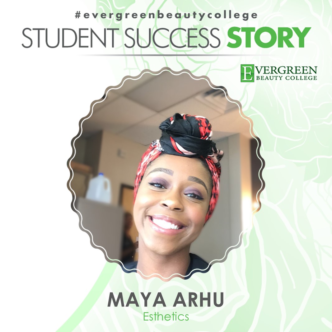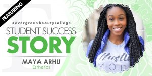 Coming from an admissions standpoint, it is always so rewarding hearing that a current student has loved her experience from the moment she walked in the door 🙂 No matter what department we work in at Evergreen, that is what we strive for and why we love our jobs! For Maya, “I chose to attend Evergreen because of the way I was greeted when I walked in the door. I knew that Evergreen was going to embrace me and they did! I feel the love when I walk into the door every Tuesday, Thursday and Saturday.” And specifically what she likes about the program, “I love the versatility. If you come to school for specific things, the instructors make sure you learn the most about what your passionate [about]. I also love the fact that I have such amazing classmates that push me like Rataya, Kareny and the rest of the “Estho Shawtys” in my class.”