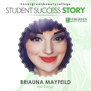 So far Briauna shared some of her most favored subjects along with her specialties since starting Evergreen’s Hair Design program: