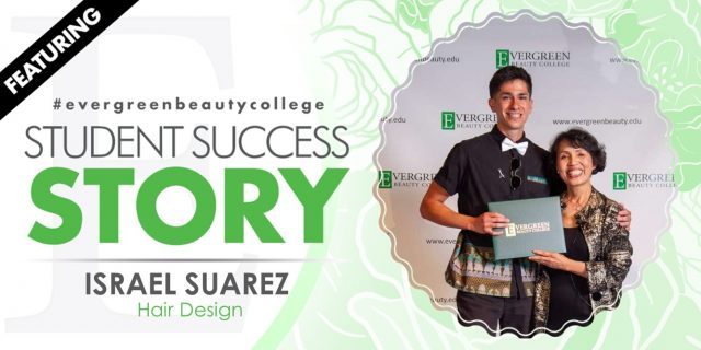 Mr. Israel Suarez graduated this August, 2019. And if you are interested in continuing to follow Israel throughout his career, you can check him out on Instagram: @izhairdesign . Congrats Israel! Evergreen wishes you the best of luck and success as you settle into the industry and we hope that when your ready to give back to the industry in a different way and are ready to educate others that you look us up. Good luck until then!