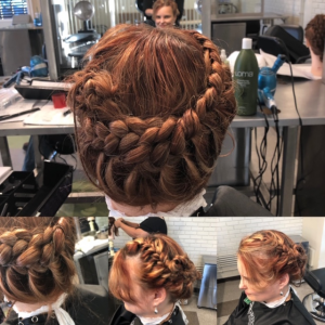 “Being in the Hair Design program I have found that I love playing with peoples’ hair in general. I am addicted to and enjoy the most, any fun and playful updos. I have recently learned to do four different braiding styles and I have had so much fun in recreating them on my mannequin heads and clients. I also love cutting hair. I love the creative ways that lines, angles and roundness can all be worked in and flow together. For me it is like going to art class everyday,” expressing Rebecca.