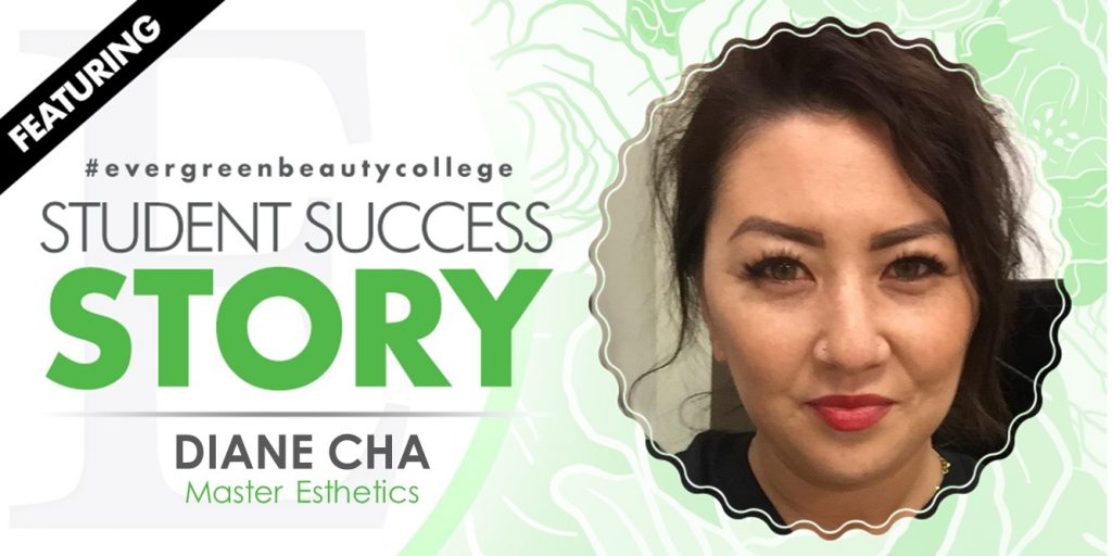 I get the pleasure to share the journey and success of one of our master esthetics future professionals from our Everett location, Diane Cha. Diane was actually one of my own students in the beginning phase of her program at Evergreen, and It has been a blessing to see her grow in many aspects. Not only does she give her all in the class room but she strides to educate and pamper her clients with the practical side on the clinic spa floor as well.