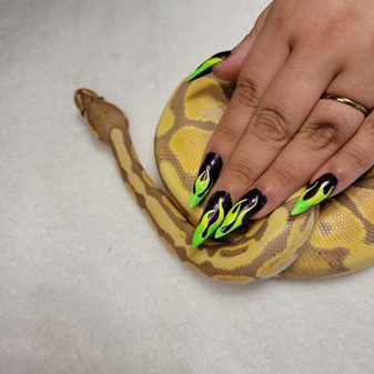 After sitting with a decision for a while, Alicia starting searching for ways to start pursuing her passions, something artistic being at the forefront. Alicia has always done nail art. “I started polishing fun designs on myself, my mom, and my litter sisters at around eight or nine years old. After a couple of years, I fell out of the hobby, briefly picking it back up in high school, before dropping it again. After working for four years, I decided I needed to get back to doing something I loved. Then I discovered the nail program at Evergreen Beauty College. The course was short, and it involved something that would flex my creativity. I jumped on the chance, I left my job shortly after. I have never been happier.” After looking into other experiences from students, more and more excitement built. “It was nearby where I lived. Everyone seemed to love it, and I was ready for the change.”