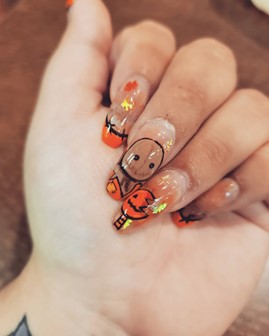Alicia created these stunning nails inspired by the movie Trick ‘r Treat.