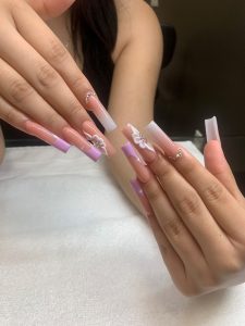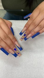 Anel has found that she has been able to get her speed down and being able to keep within a timeframe for her acrylic sets. “I like to stay in between my time frame. Typically, my sets can range in time from an hour and forty minutes to three hours. That time will depend on the simplicity of the nail set, and I am able to keep a conversation going while providing the service.” Anel shared that she is always up for a challenge for any ideas that her clients have and is excited for what they bring to her.